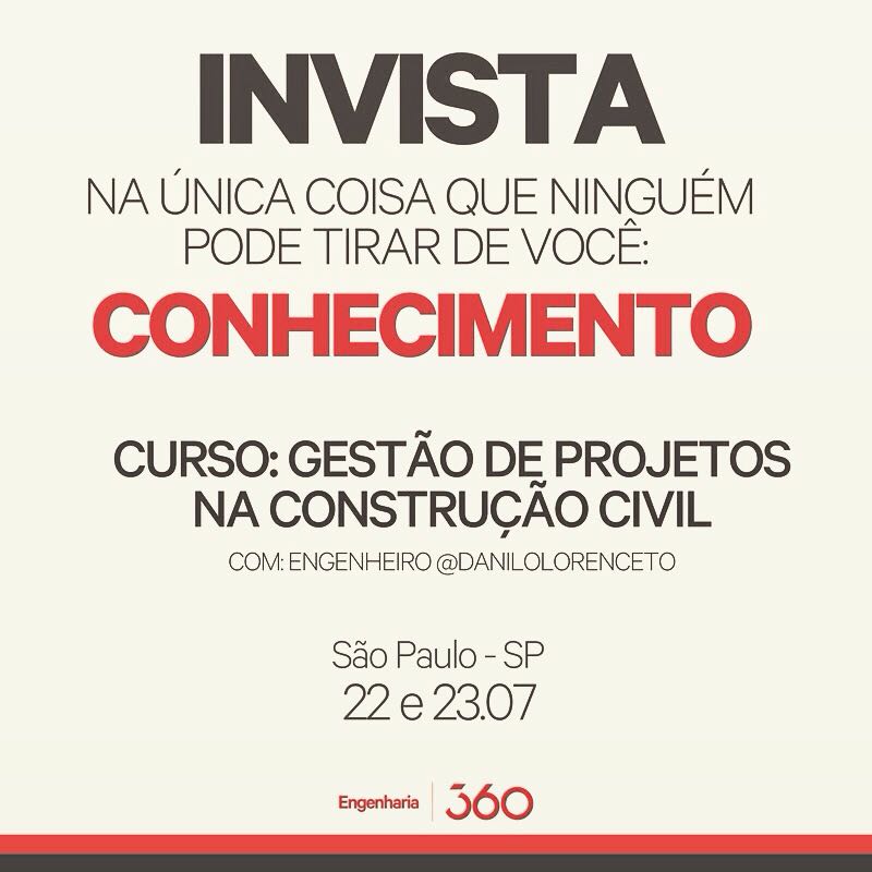 O Curso 360 | Gerenciamento de Projetos na Construção Civil é uma realização do Engenharia 360 | Grupo Digital Bronks, em parceria com e Engenheiro Civil e Gerente de Projetos Danilo Lorenceto, com o apoio dos canais Blog da Engenharia, Blog da Arquitetura, Engenharia Depressão e Instituto de Engenharia.