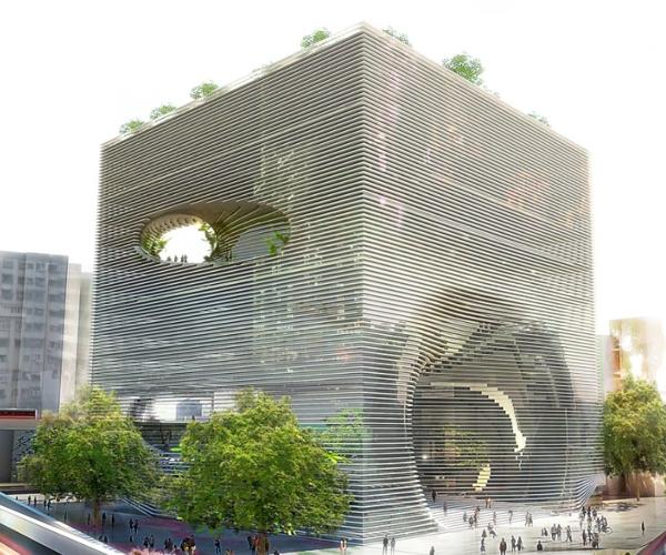 Este cubo instável de 57 metros de largura é o TED, um novo edifício sendo construído em Taiwan. Além de sua bela arquitetura, ele possui escadas gigantes em forma de espiral, que terminam em uma espécie de anfiteatro na cobertura