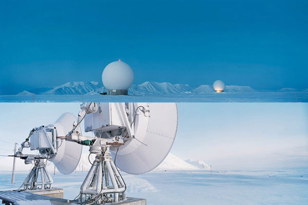 O fotógrafo Christian Houge tirou estas belíssimas fotos de uma base de pesquisa científica no Ártico. O canhão de íons na verdade é uma radome, uma redoma resistente às mudanças do tempo que protege uma antena de radar.