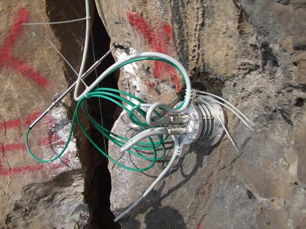 Cada um deles é composto por sensores que trabalham de forma independente e automática. Em uma pequena caixa, chamada de unidade inteligente (são dez no total) existem três sensores para medir o alargamento da fratura, oito servem para monitorar a inclinação da parede, três captam as micro-rupturas na estrutura da rocha, e outros quatro com funções menos importantes.