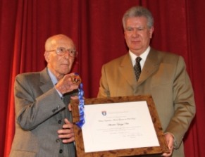 O engenheiro Abrahão Yázigi Neto recebe do presidente do Instituto, Aluizio de Barros Fagundes, o Prêmio Engenheiro Antonio Francisco de Paula Souza