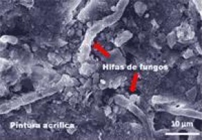 Já estudos realizados em estações de pesquisa em São Paulo, no Pará e no Rio Grande do Sul revelaram que o clima e as condições ambientais influenciam a velocidade da colonização microbiana em tintas. Embora as tintas em Belém tenham ficado mais escuras pela colonização por organismos fototróficos, as utilizadas em São Paulo foram mais colonizadas pelos fungos.