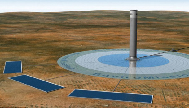 A torre, com custo estimado em US$ 750 milhões, será conectada a uma estufa com 4,8 km de diâmetro no máximo. A estufa servirá para esquentar o ar através da radiação solar, sendo que a temperatura naquele espaço, segundo os engenheiros, poderá chegar a até 72 °C. O ar mais quente, e portanto mais leve, sobe para a torre, por onde propulsiona 32 turbinas durante sua passagem, gerando até 200 MW de energia.