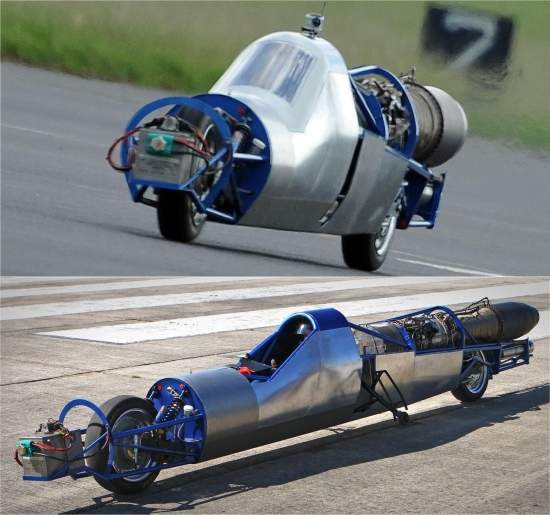 A grande questão era se a estranha e comprida motocicleta a jato ficará estável quando a turbina for acelerada a plena potência.