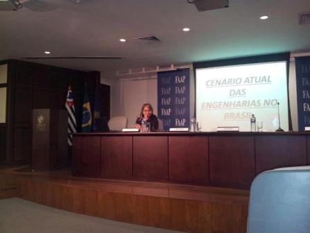 A vice-presidente de Atividades Técnicas do Instituto de Engenharia, Miriana Marques, ministrou, no dia 10 de maio, a palestra “O cenário atual das engenharias no Brasil” na 43ª Semana de Engenharia da Faap.