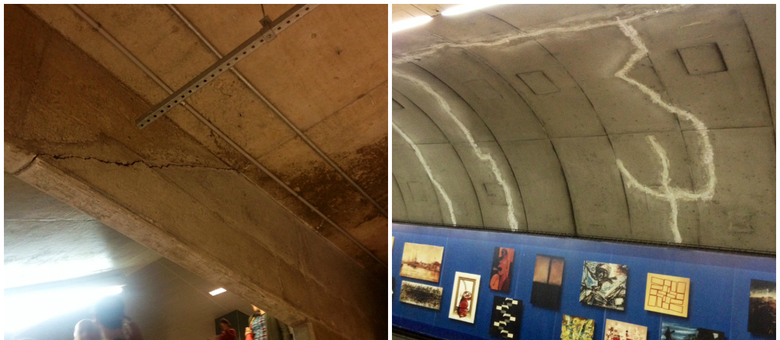 À esquerda, rachadura na estação República, que chama a atenção de engenheiros ouvidos pelo R7