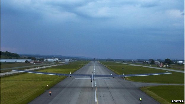 O Solar Impulse 2 decolou de madrugada de uma pista em Payerne e retornou duas horas mais tarde.