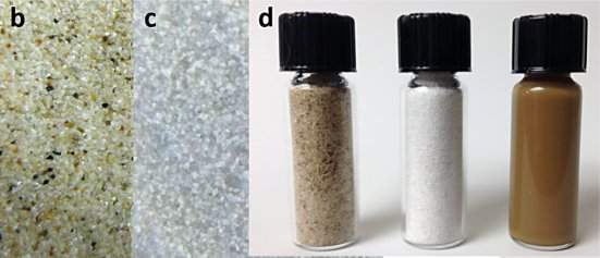 Favors moeu a areia até produzir grãos em escala nanométrica e então purificou-a para aumentar a concentração de quartzo – a areia passou de cinza para branca, similar em cor e textura ao açúcar.