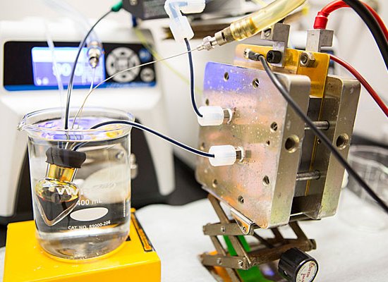 Em vez de guardar a energia internamente, a bateria de fluxo armazena a eletricidade em produtos químicos que podem ser armazenados em tanques. [Imagem: Kaixiang Lin/Harvard University]