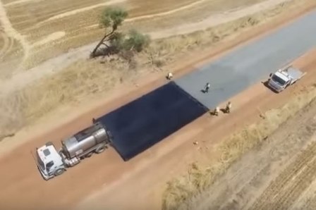 Realizada por um drone, a filmagem na cidade de Shire of Moora revela o processo de pavimentação em apenas dois dias. Chama a atenção nas imagens a organização e a sincronia dos operários, feita num processo no qual um asfalto líquido é pulverizado sobre o terreno e, logo depois, é jogado uma camada de cascalho.