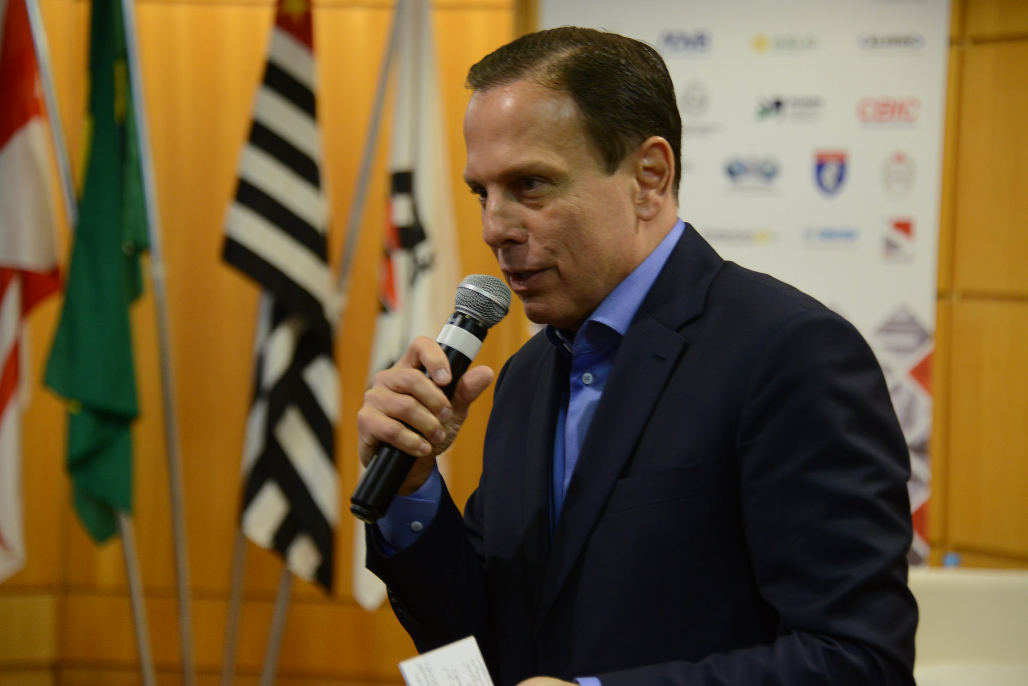 Acompanhado por correligionários, inclusive o prefeito de São Paulo, Bruno Covas, Doria iniciou sua palestra destacando a necessidade de diminuir custos e desburocratizar processos de licenciamento ambiental.