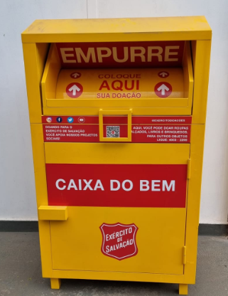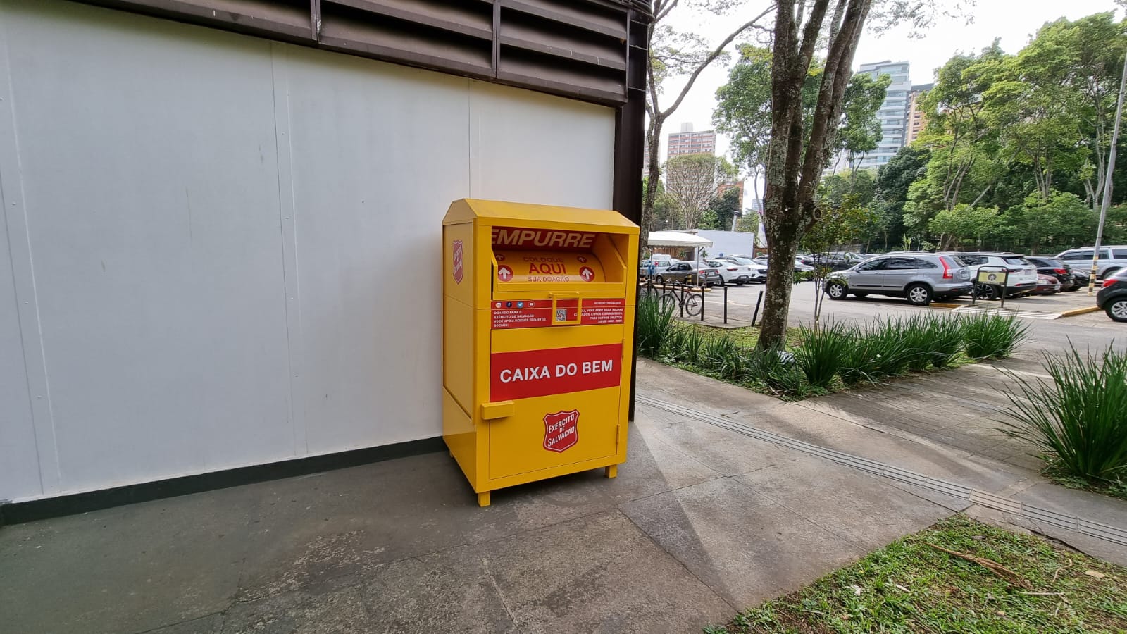 A “Caixa do Bem” fica na lateral do prédio da sede do Instituto de Engenharia, próximo à entrada, e está disponível para doação inclusive aos finais de semana.