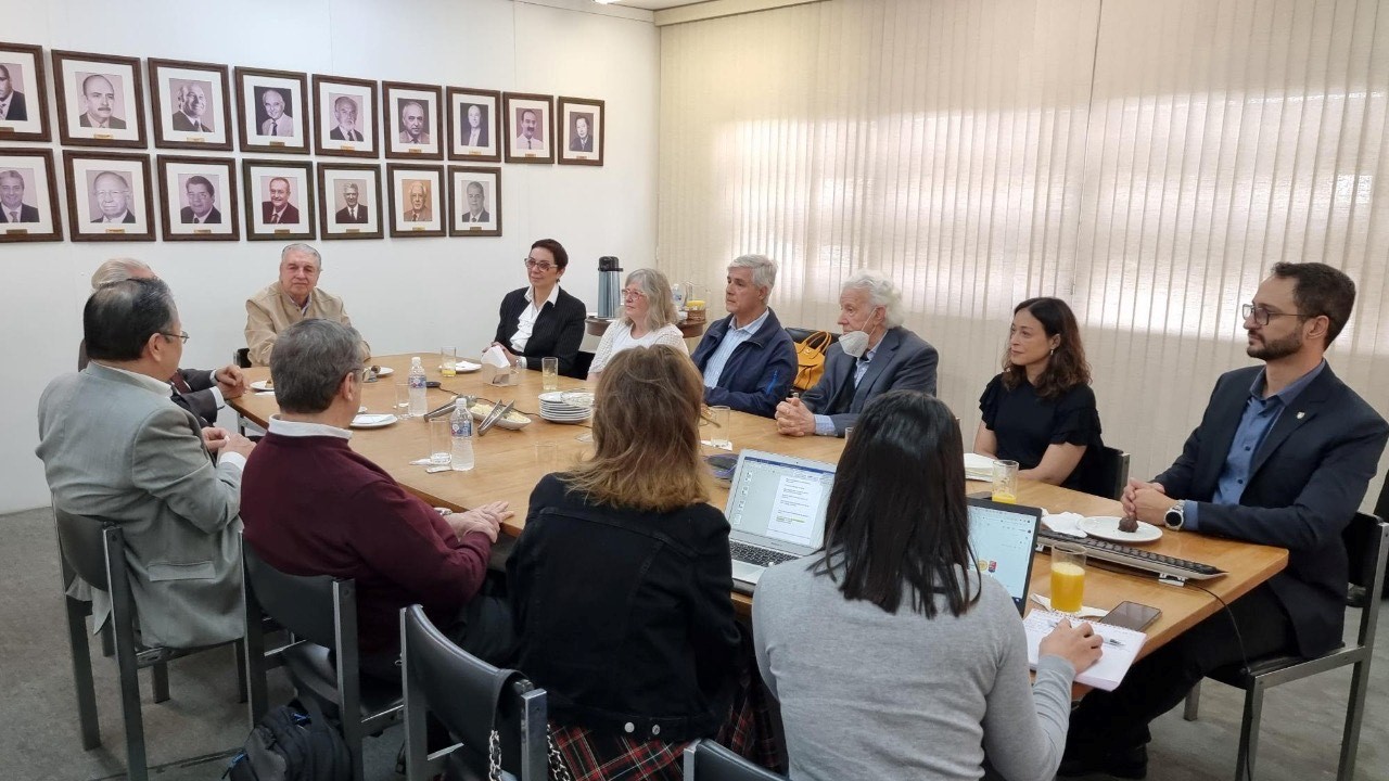 Após conhecer nossas instalações, ela participou de uma breve reunião, onde estavam presentes, Paulo Ferreira, presidente do IE e membros da diretoria, Conselho Consultivo e convidados do Instituto.