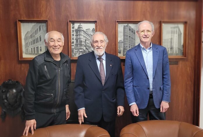 O presidente do Instituto de Engenharia, José Eduardo Jardim, e o VP de Assuntos Insternos, Lawrence Koo, receberam nesta quarta (8), Pedro Wongtschowski, ex-presidente do conselho de administração e ex-CEO do Grupo Ultra, para um almoço na sede do IE.