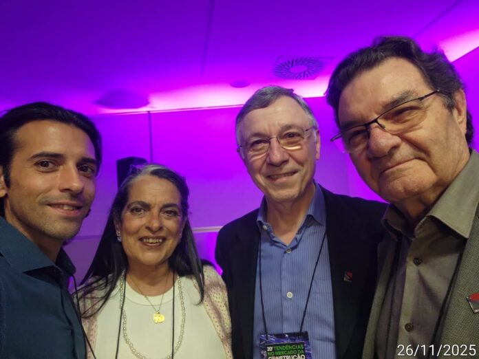 Da esq. p/ dir., Vitor Marques, Miriana Marques, Afonso Mamede, presidente, e Carlos Fugazzola Pimenta, vice-presidente, ambos da SOBRATEMA