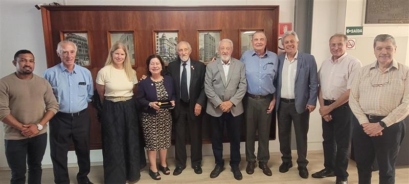 O presidente do Instituto de Engenharia, José Eduardo Jardim, acompanhado por membros da Diretoria, dos Conselhos e convidados, recebeu nesta quarta-feira (10) a engenheira Ieda Yell.