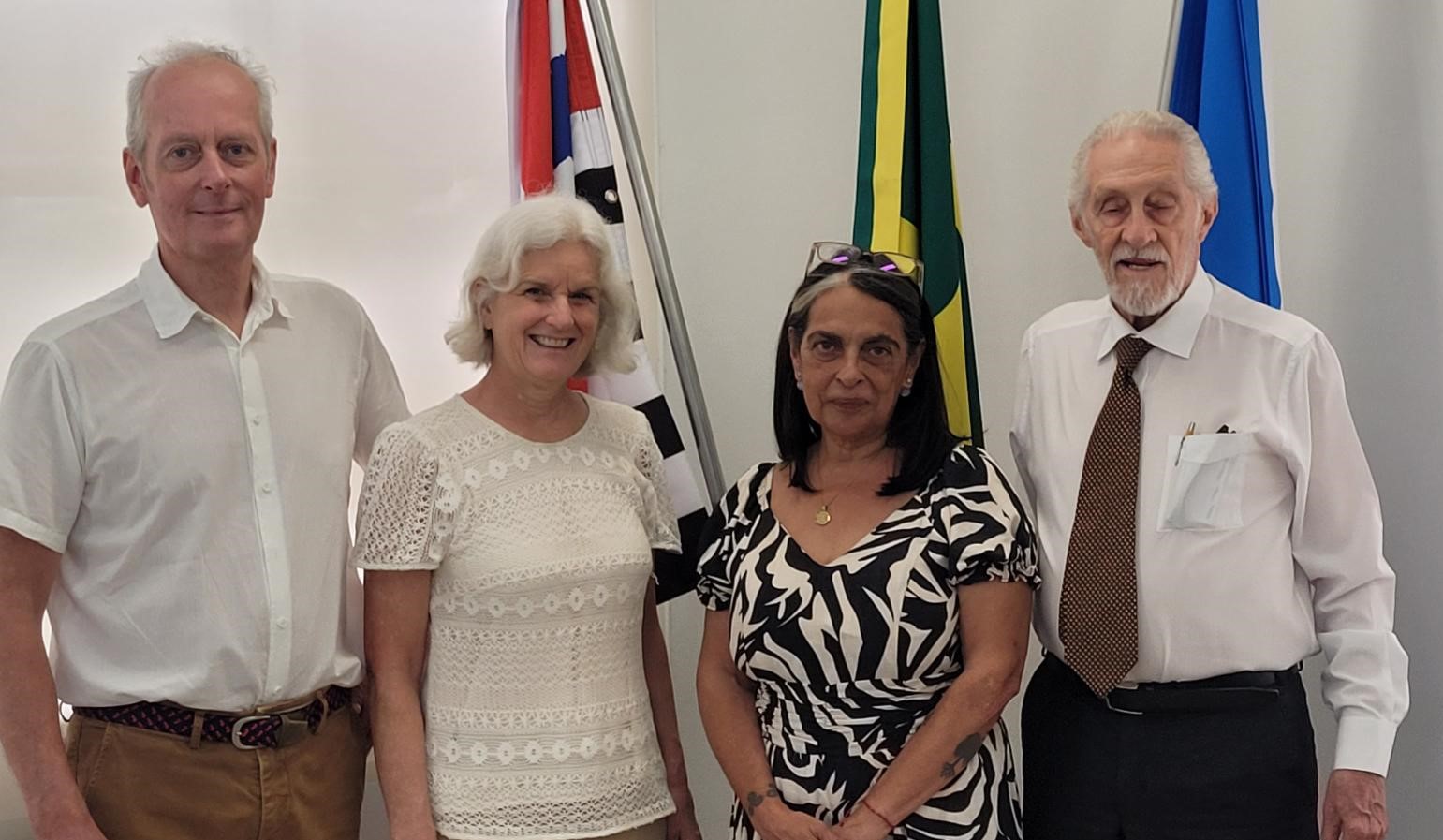 Em visita ao Brasil, o casal francês encontrou o amigo de longa data, Eduardo Jardim, que aproveitou a oportunidade para apresentar as instalações do Instituto.