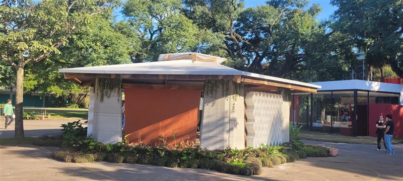 A impressão 3D foi fundamental, especialmente no desenvolvimento dos pilares. Em vez de imprimir a casa inteira, o que ainda não é viável economicamente, focamos na peça estrutural.