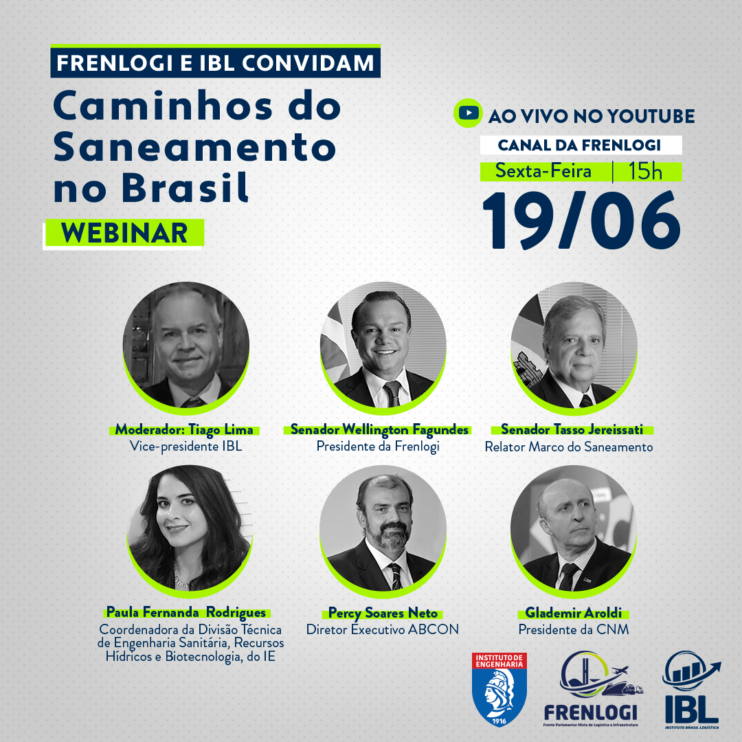 Nesta sexta-feira, 19, o Instituto de Engenharia, a Frente Parlamentar Mista de Logística e Infraestrutura (Frenlogi) e o Instituto Brasil Logística (IBL) realizarão a webinar “Caminhos dos Saneamento no Brasil”.