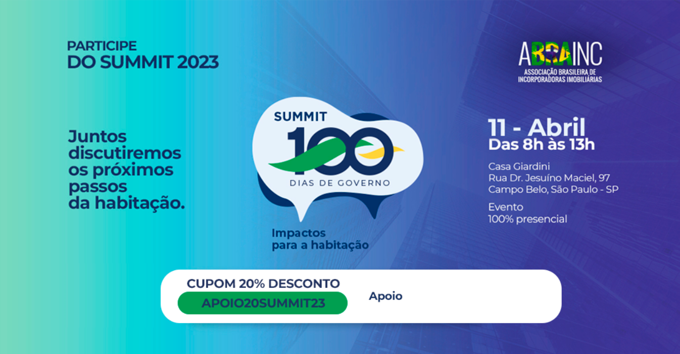 2023ter11abr08:0013:00SUMMIT ABRAINC - 100 DIAS DE GOVERNO08:00 - 13:00 Casa Giardini - Rua Doutor Jesuíno Maciel, 97, Campo Belo, São Paulo, SPTipo de evento:Agenda,Apoio Institucional